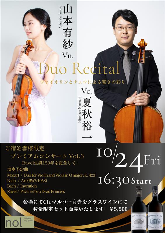 nol hakone myojindaiは山本有紗氏をはじめとする藝大フィルハーモニア管弦楽団メンバーを中心にお招きし、当館ロビーラウンジにてミニコンサートを開催いたします。