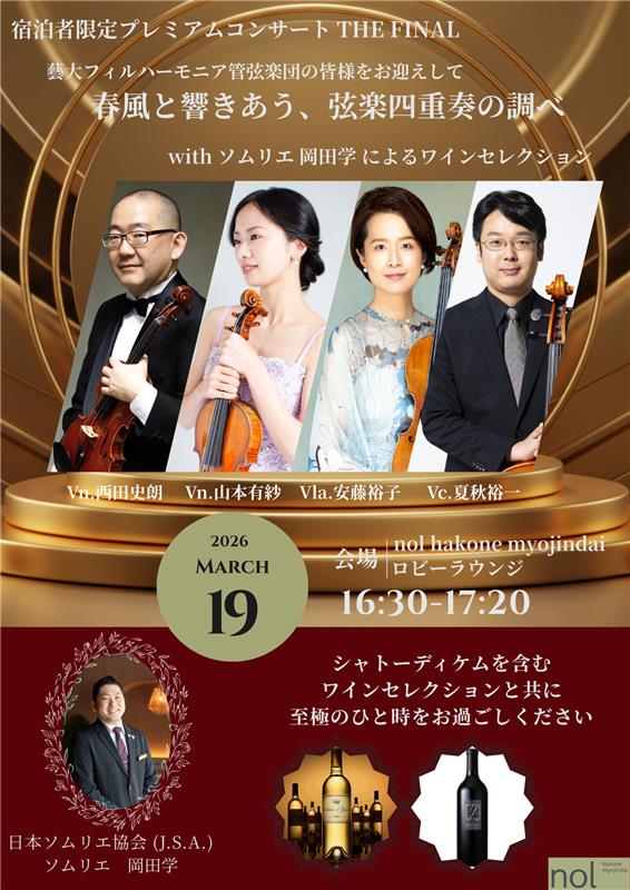 nol hakone myojindaiは山本有紗氏をはじめとする藝大フィルハーモニア管弦楽団メンバーを中心にお招きし、